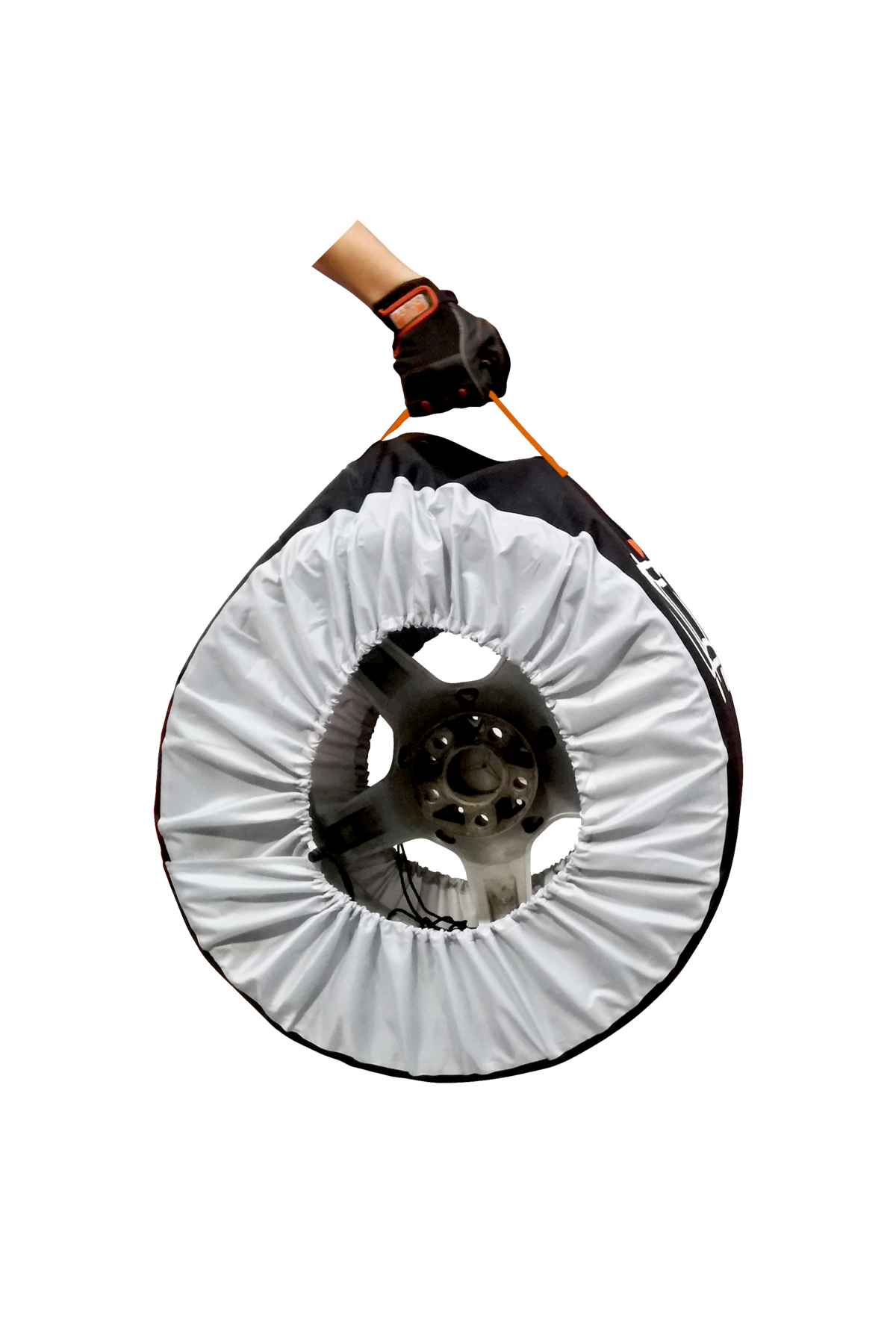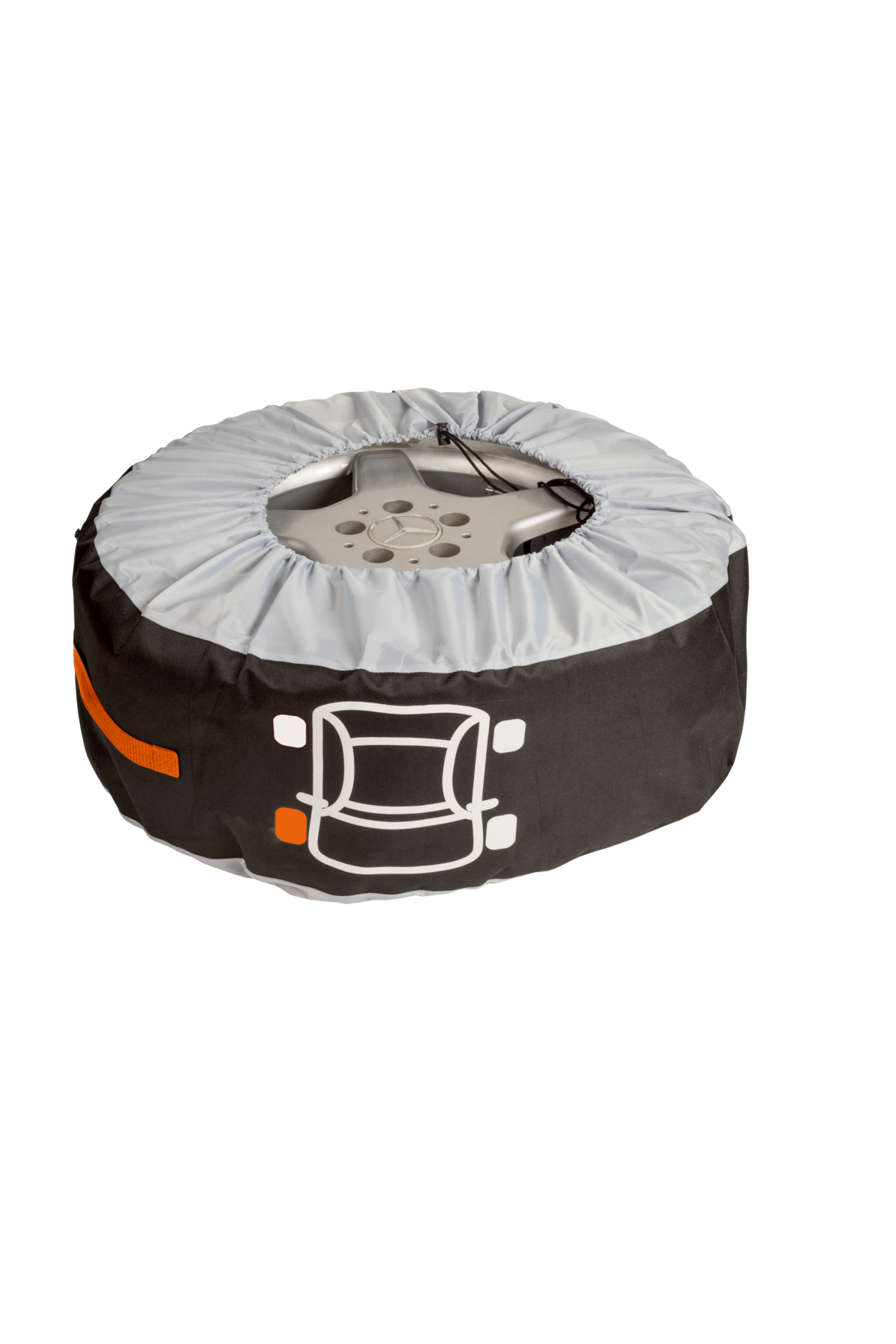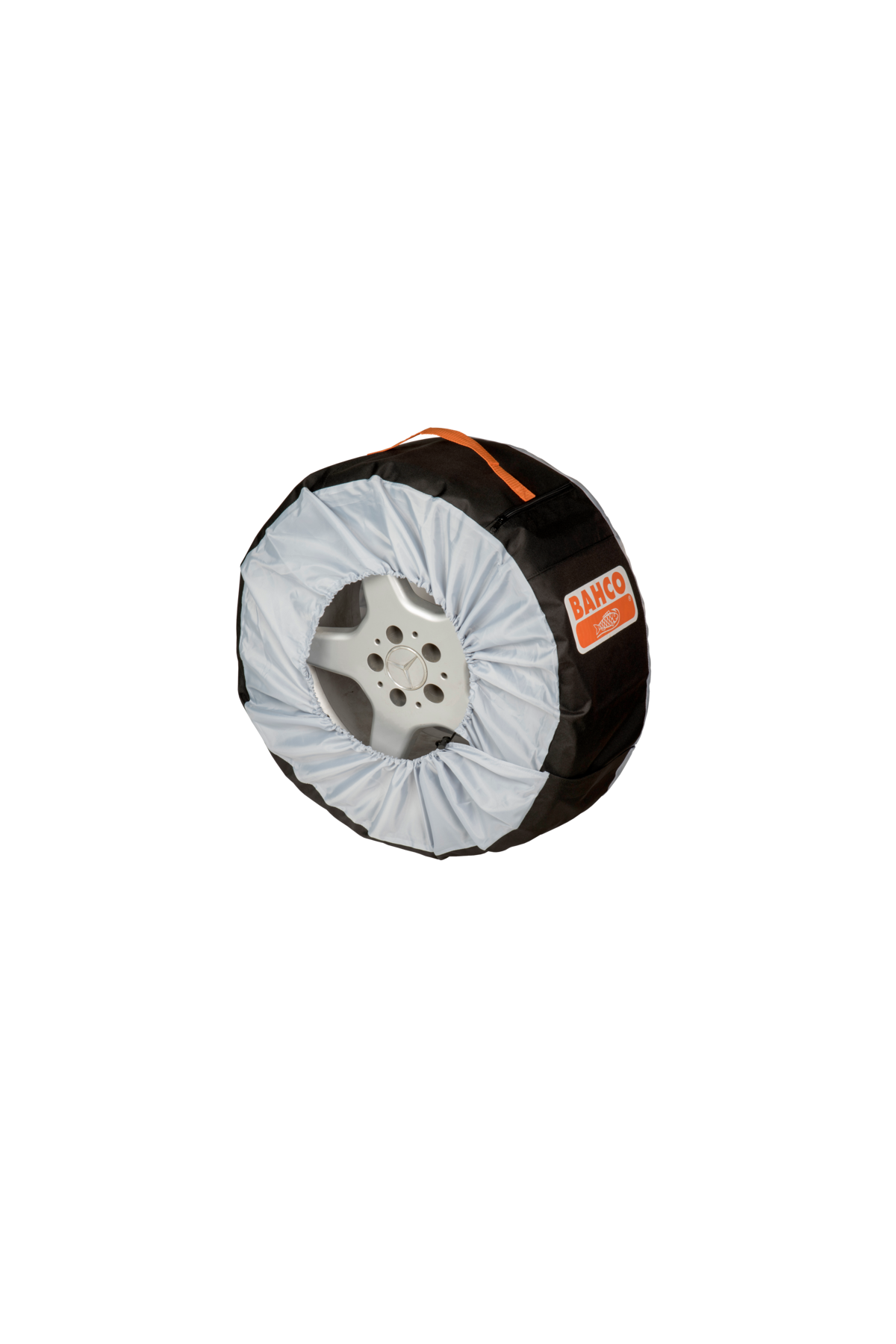 Blixtlåsförsedd påse för förvaring av hjulmuttrar.