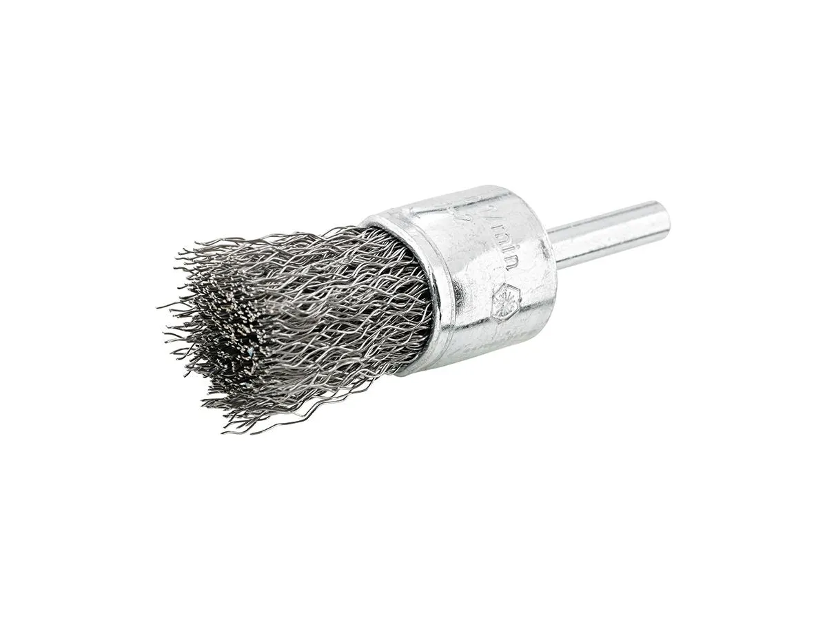 Med vågig ståltråd. Borstarna används i högvarviga luft- och eldrivna handmaskiner. Med 6 mm skaft.