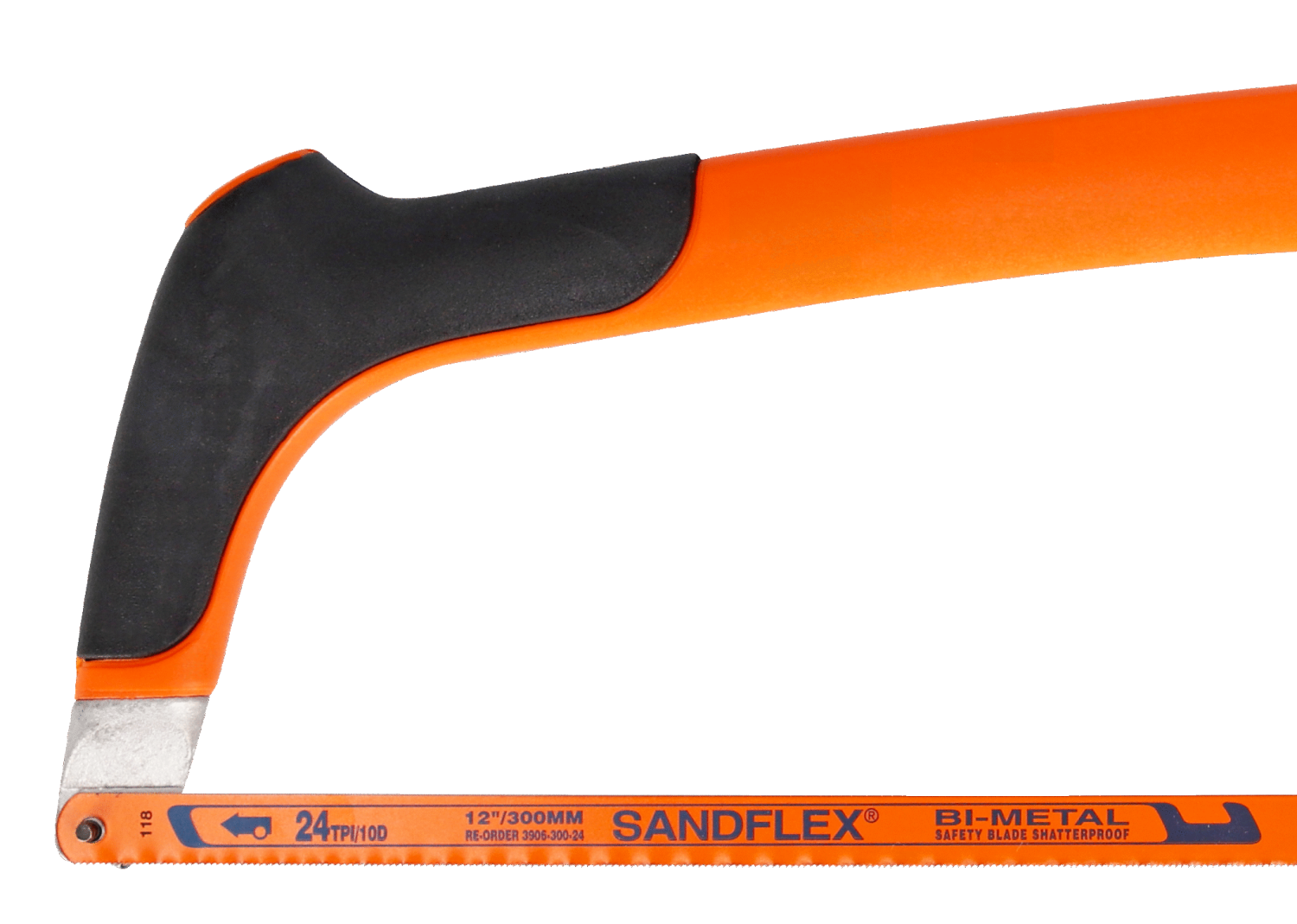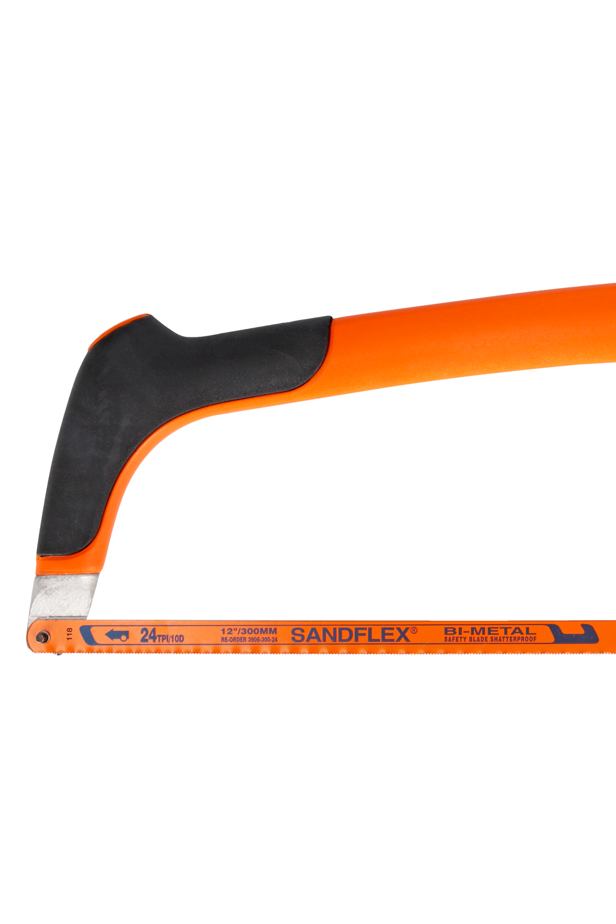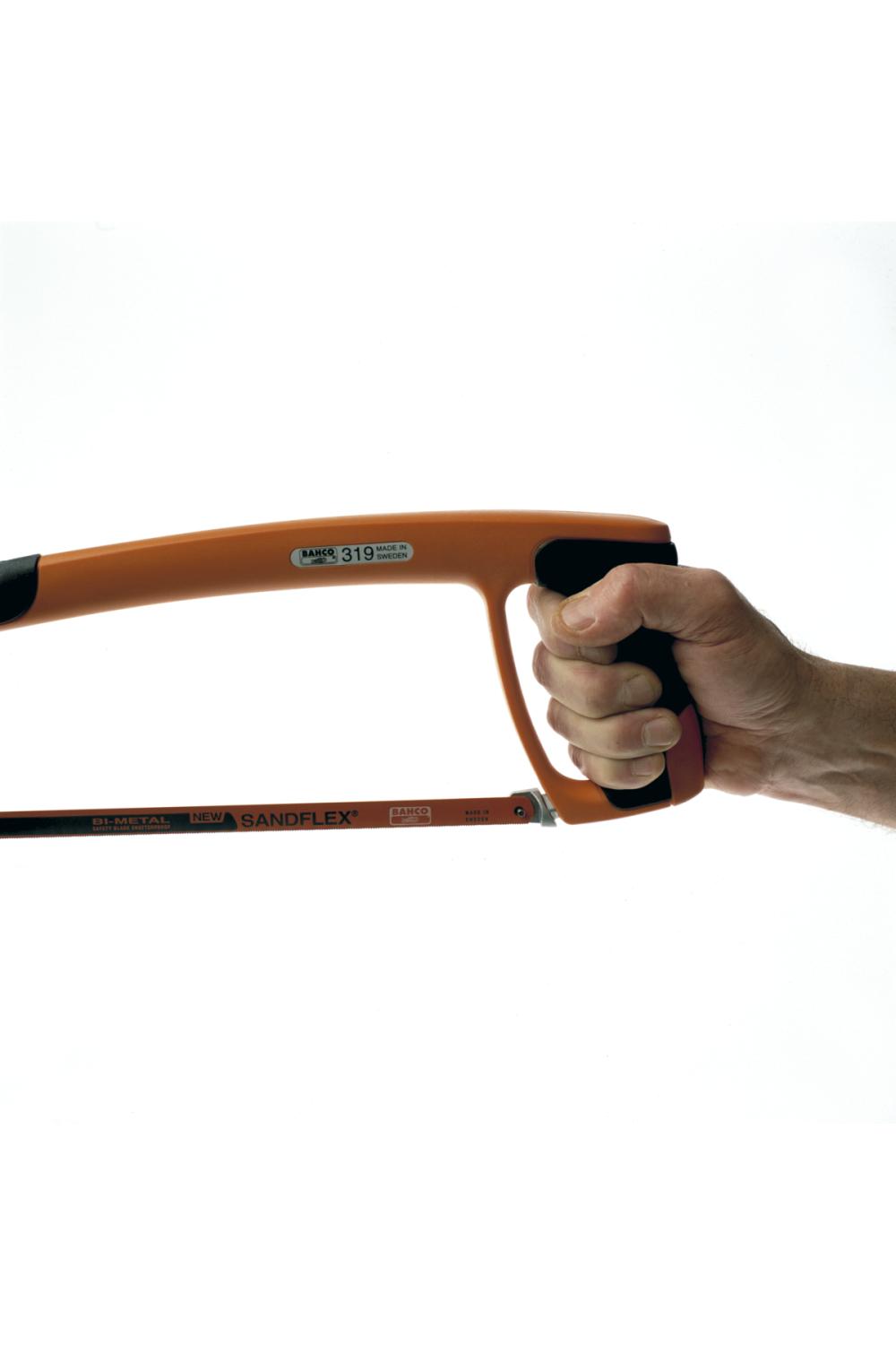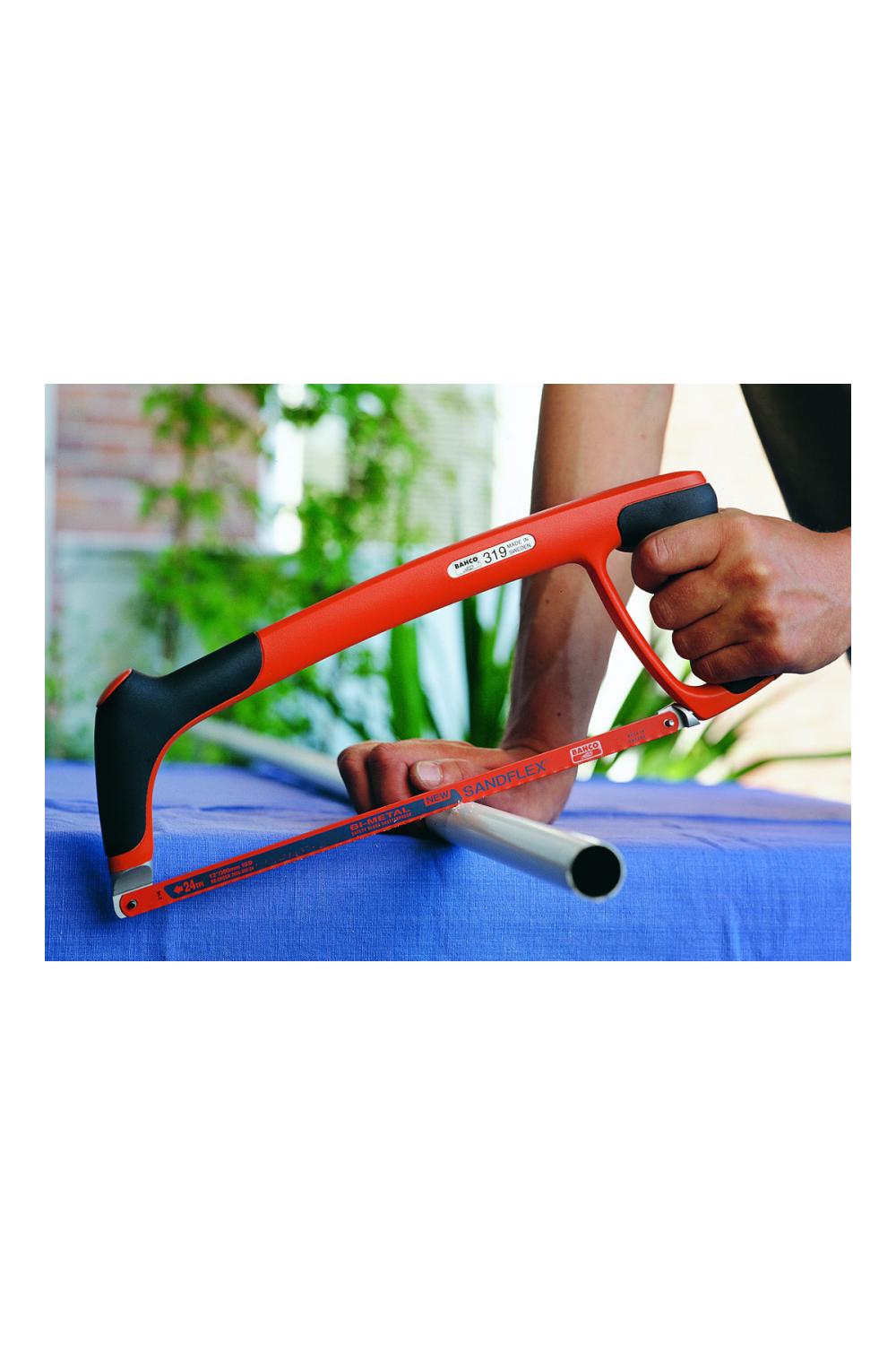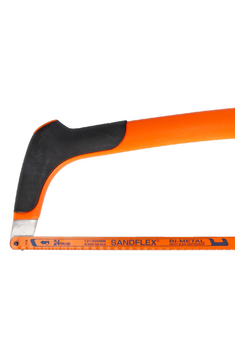 En professionell 300 mm bågfil med mjukt grepp, hög bladspänning och medföljande Sandflex®-bimetallblad för raka och precisa snitt.