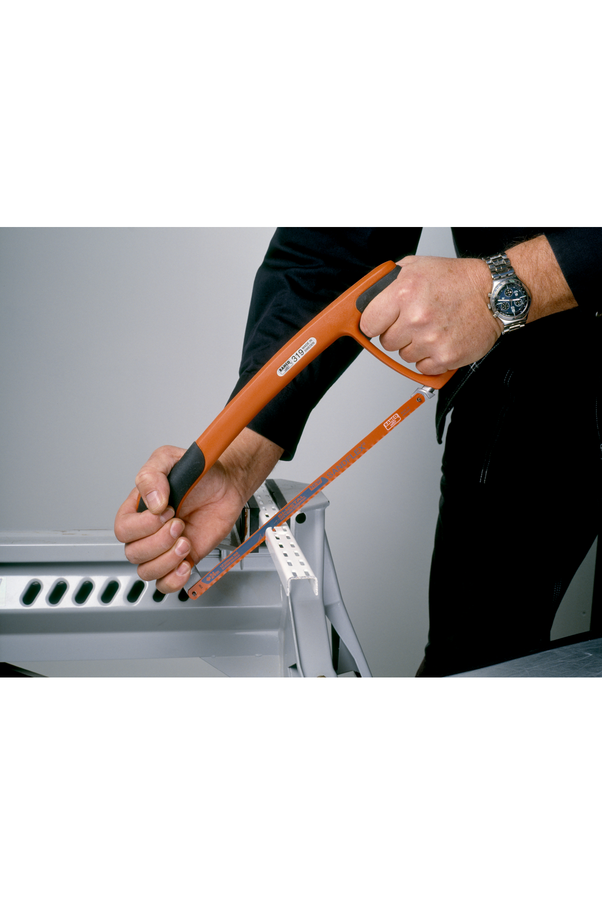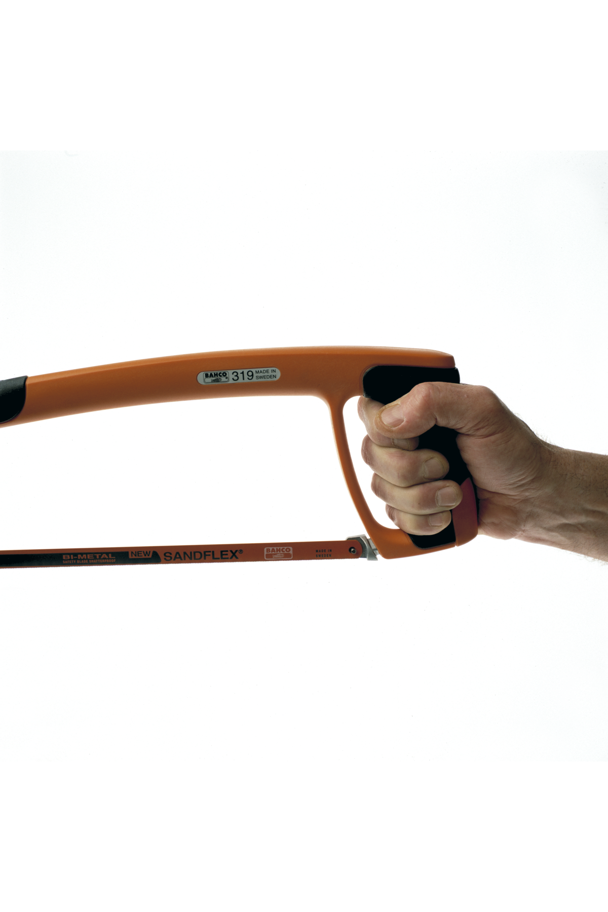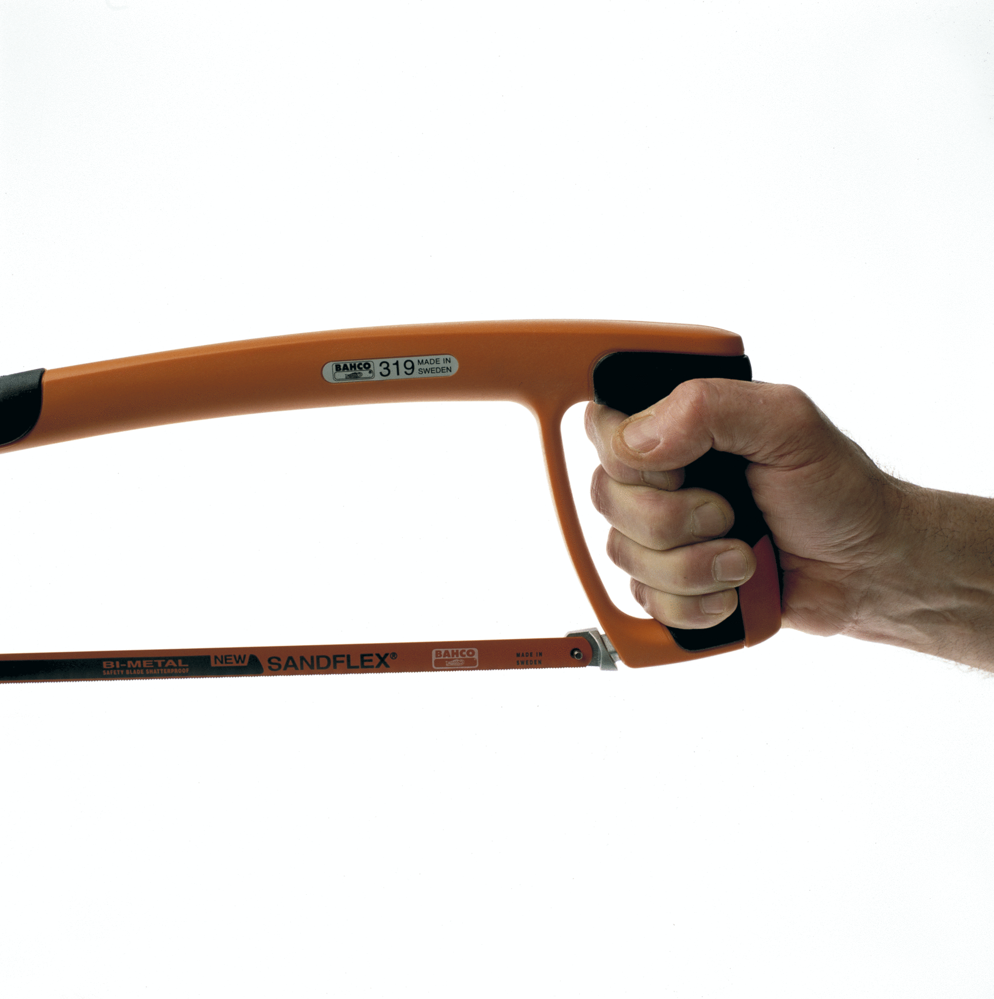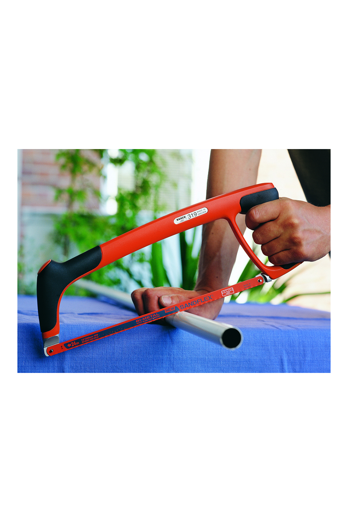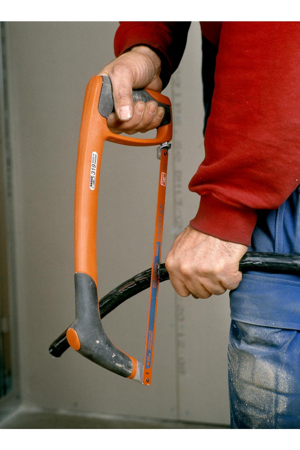 En professionell 300 mm bågfil med mjukt grepp, hög bladspänning och medföljande Sandflex®-bimetallblad för raka och precisa snitt.