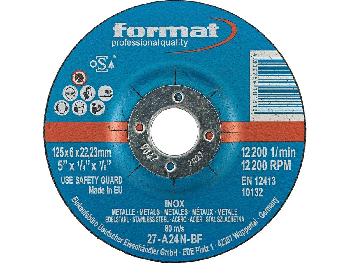 Grovslipskiva för rostfritt, 125x6mm, försänkt, Format