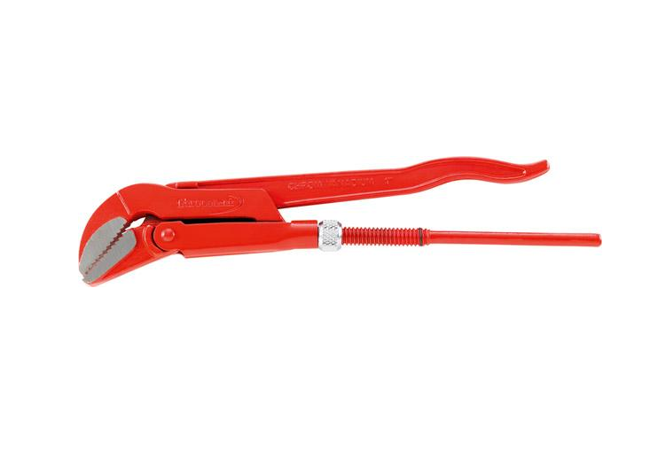 Kraftig rörtång i krom-vanadinstål med härdade käftar och 45° vinklat huvud för säkert grepp och hög hållbarhet.