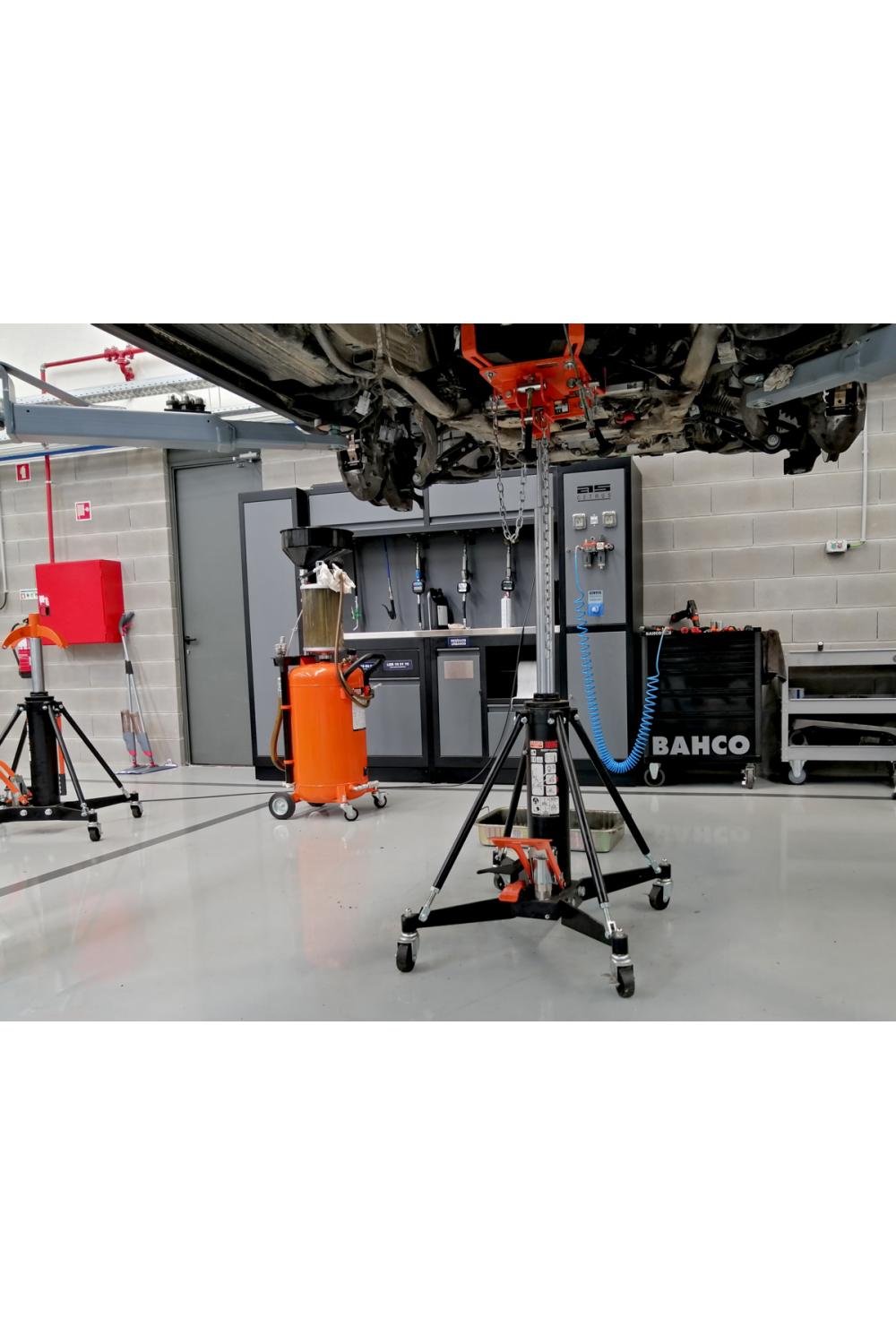 - Hydraulisk växellådslyft för max.1 000 kg för användning under upphissade fordon för säker demontering, montering och transportering av växellådor.
