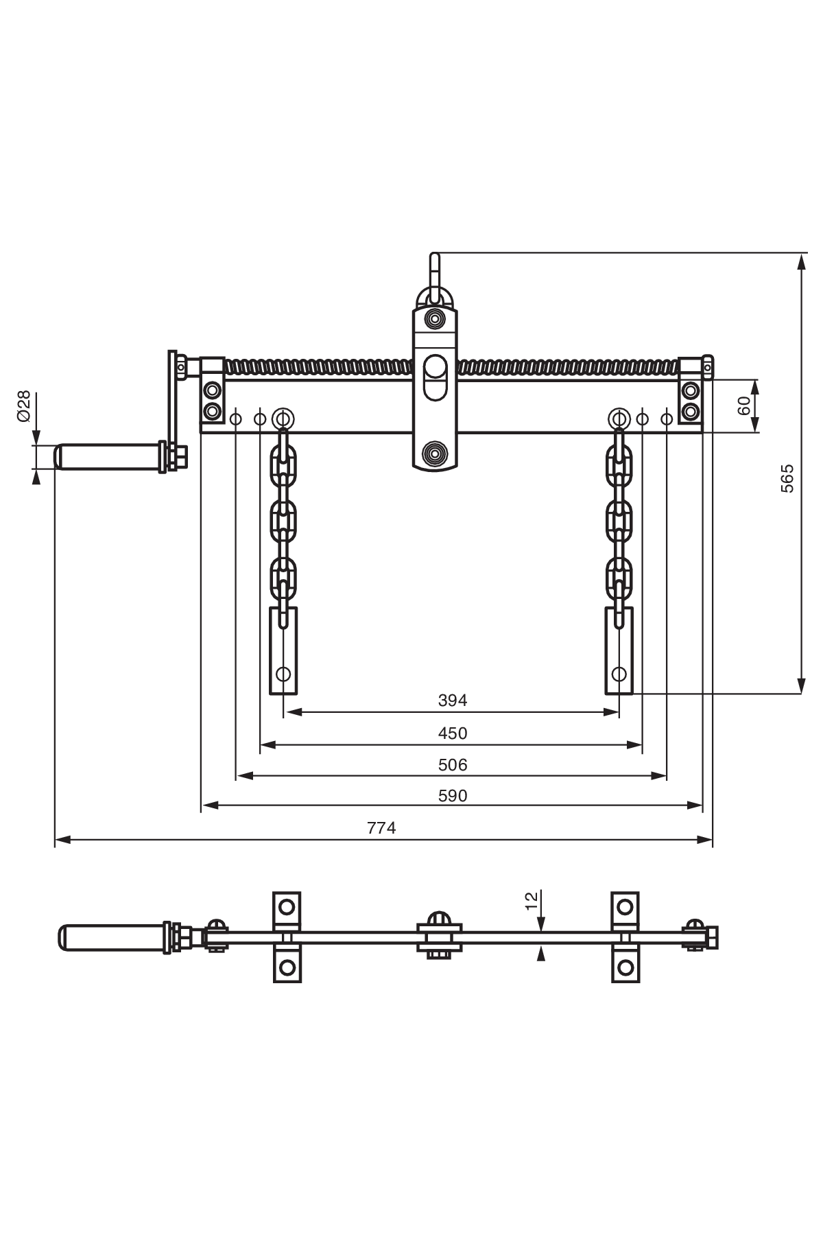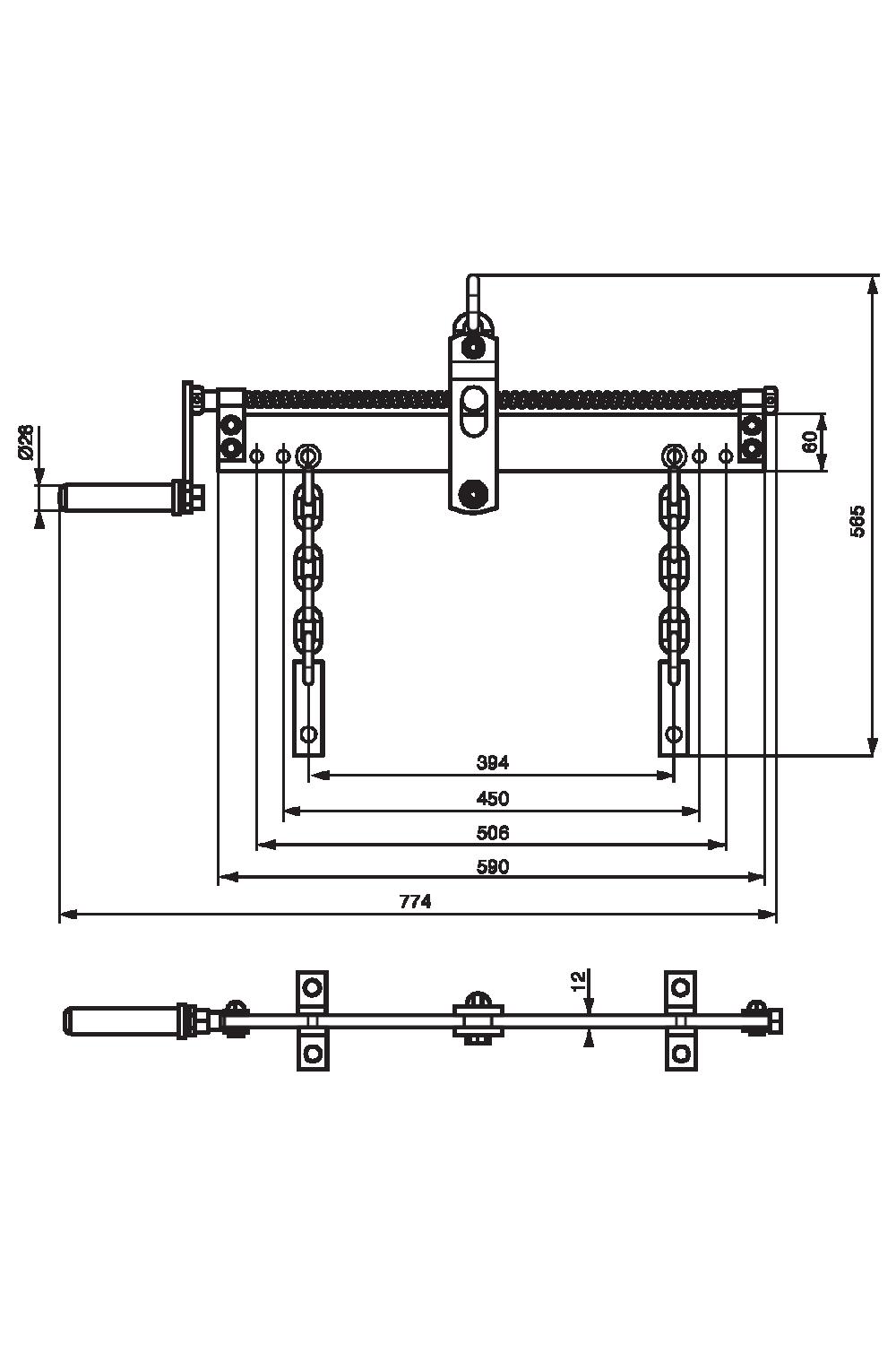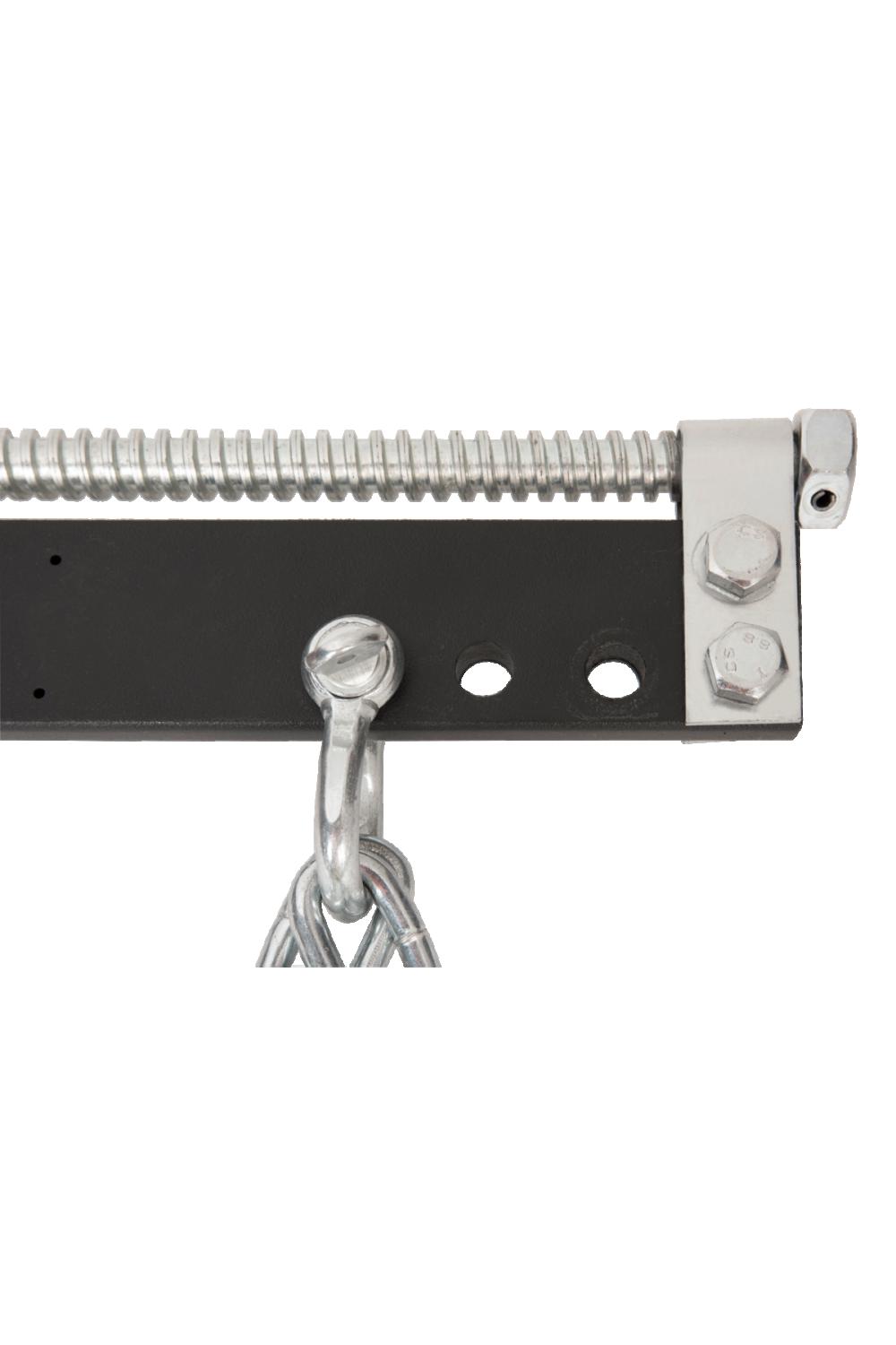 Kraftig svetsad kedja (Ø7,5 mm) och solida monteringsplattor.