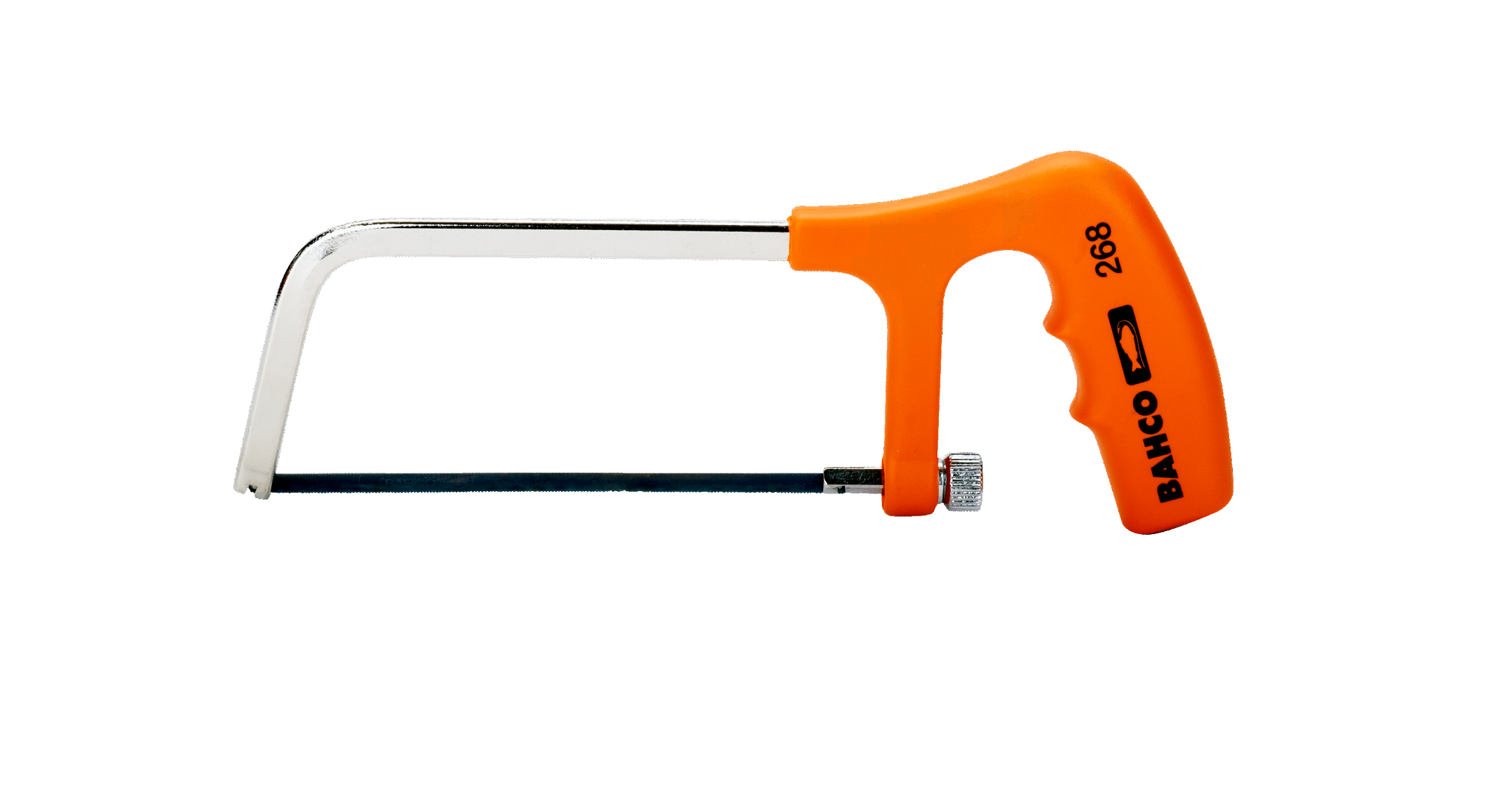En kompakt och robust minibågfil med stålram, glasfiberhandtag och 150 mm blad för precis kapning.