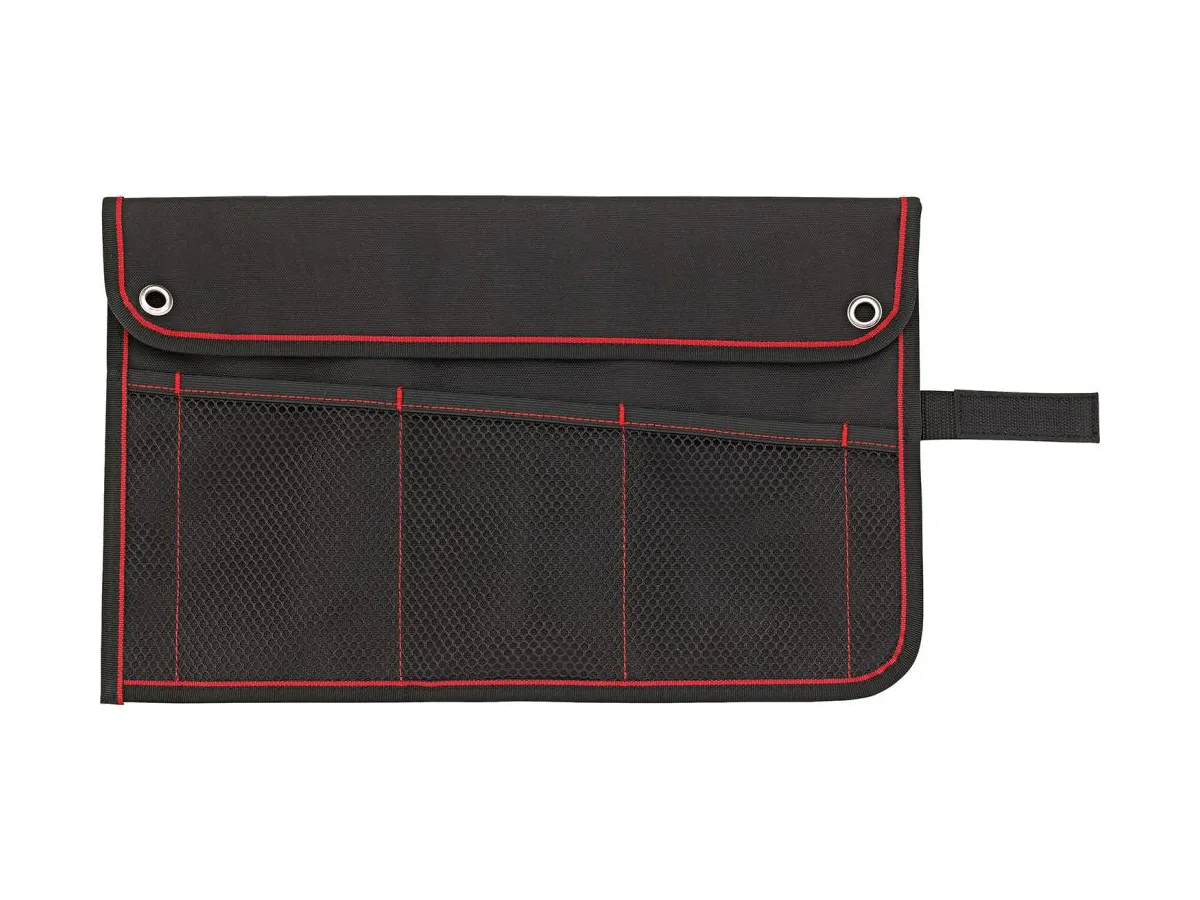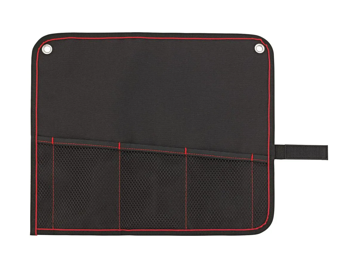 Praktisk och slitstark verktygsrulle i nylon med flera fack och enkel kardborrestängning.