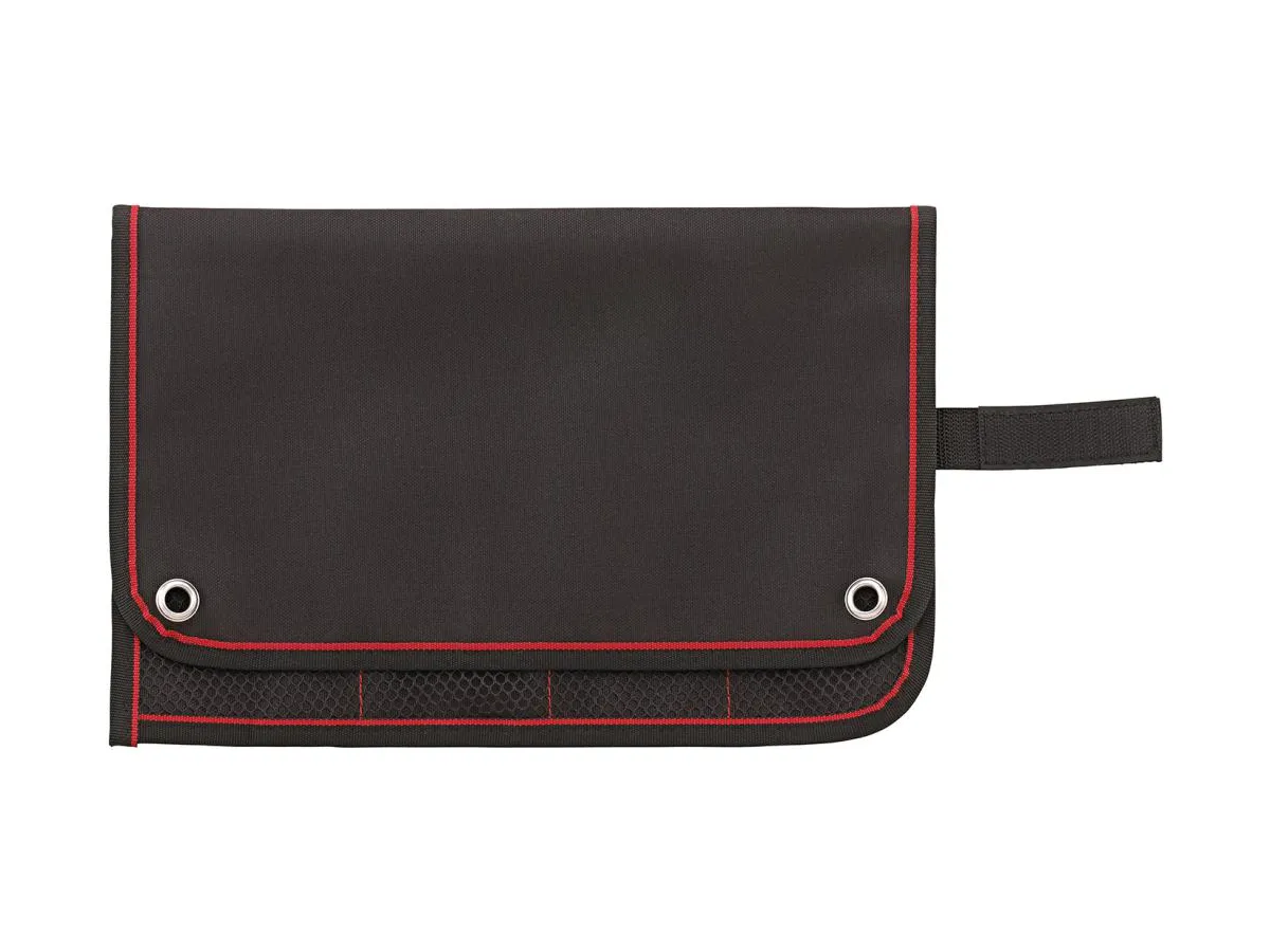 Praktisk och slitstark verktygsrulle i nylon med flera fack och enkel kardborrestängning.