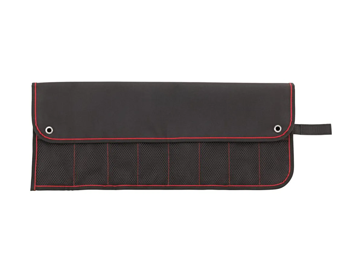 Praktisk och slitstark verktygsrulle i nylon med flera fack och enkel kardborrestängning.