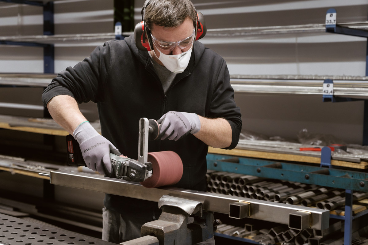 - Kompakt batteridriven satineringsmaskin för slipning, satinering, borstning och högglanspolering av till exempel rostfritt stål