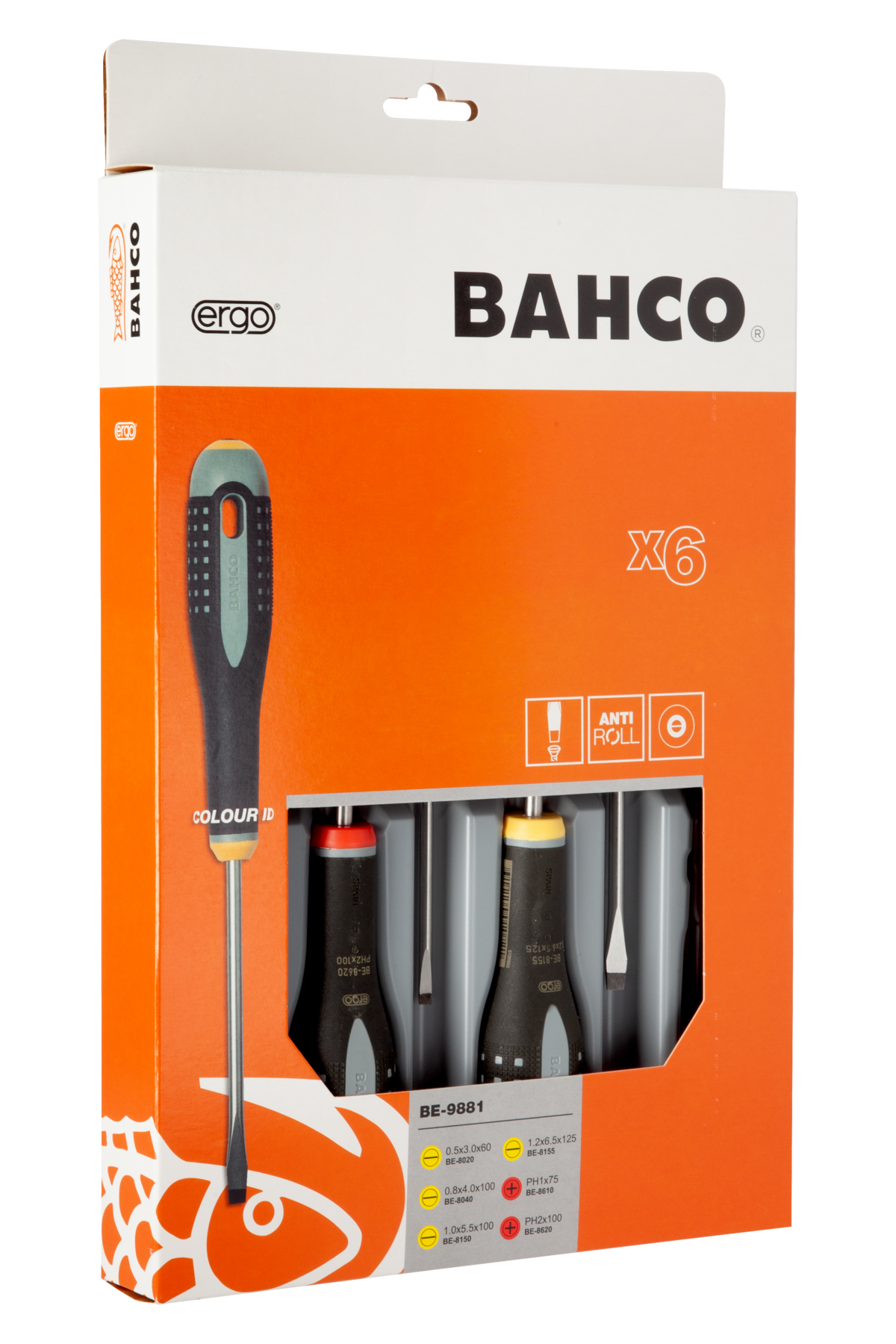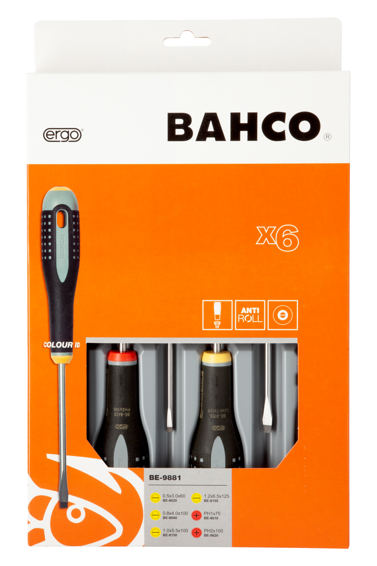Sats med ERGO™ skruvmejselsats för spår- och Phillips-skruv, med gummigrepp – 6 st