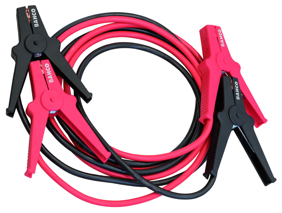Finns i olika dimensioner beroende på den ström som ska överföras med kablar och klämmor.