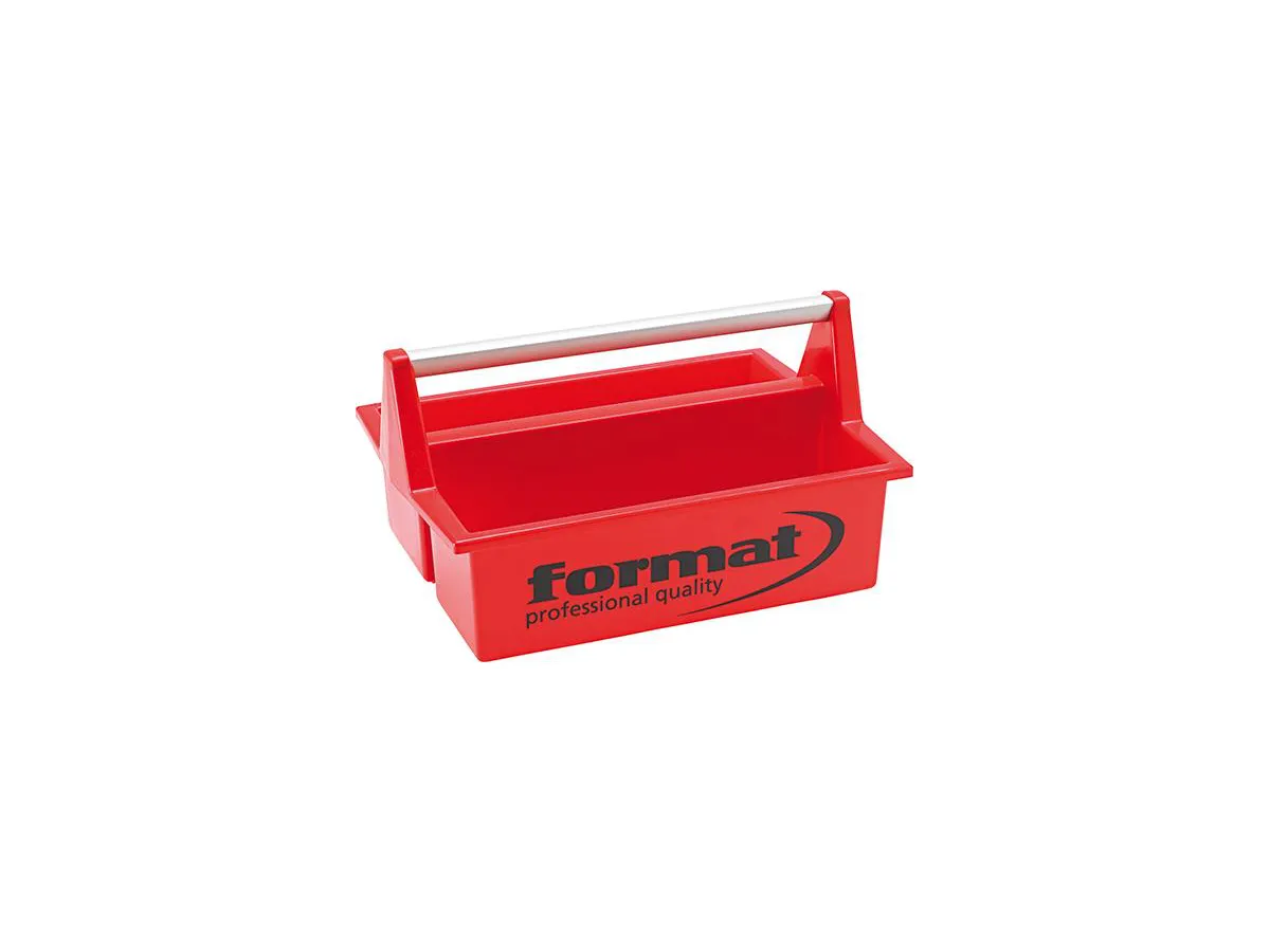 Praktisk och lätt verktygslåda i tålig polypropen med aluminiumhandtag och integrerade måttskalor.